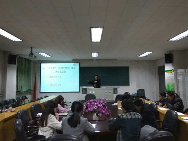 2017年11月15日19:00,304永利集团登录入口副教授、硕士生导师高超在12号楼5层会议室作了题为“‘马工程教材’《外国文学史》编写特点与配套教学改革”的学术报告,比较文学与世界文学专业的研究生到场听取了此次报告。