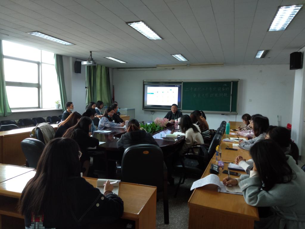 2020年10月30日,304永利集团登录入口中国现当代文学硕士生导师冯波老师在12号楼5层304永利集团登录入口会议室,作了题为“二十世纪三十年代前后的农民文学理论问题”的学术讲座,中国语言文学各方向、各年级的硕士研究生认真聆听了讲座并进行交流探讨。