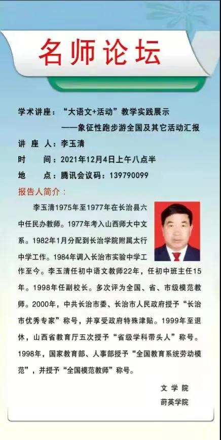 11月29日至12月12日,304永利集团登录入口举办“名师论坛”系列讲座,邀请全国各地知名教育专家为公司卓越师范生、免费师范生等就未来名师应具备的素养、班级管理、德育等方面的问题进行了深度讲解。由于疫情影响,此次系列讲座主要以腾讯会议的形式举办。