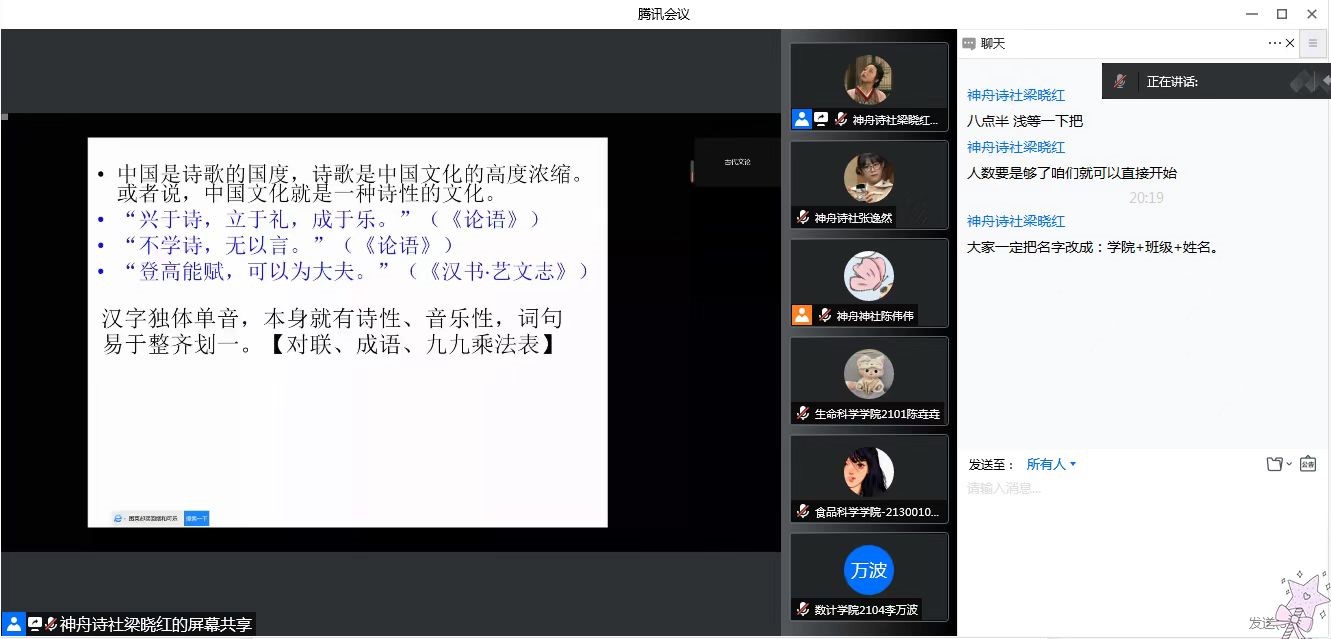 4月21日,304永利集团登录入口神舟诗社在线上举办了“赏诗词之韵,鉴名家之情”诗词讲座。本次讲座由304永利集团登录入口郭庆财老师担任主讲,约400人聆听。