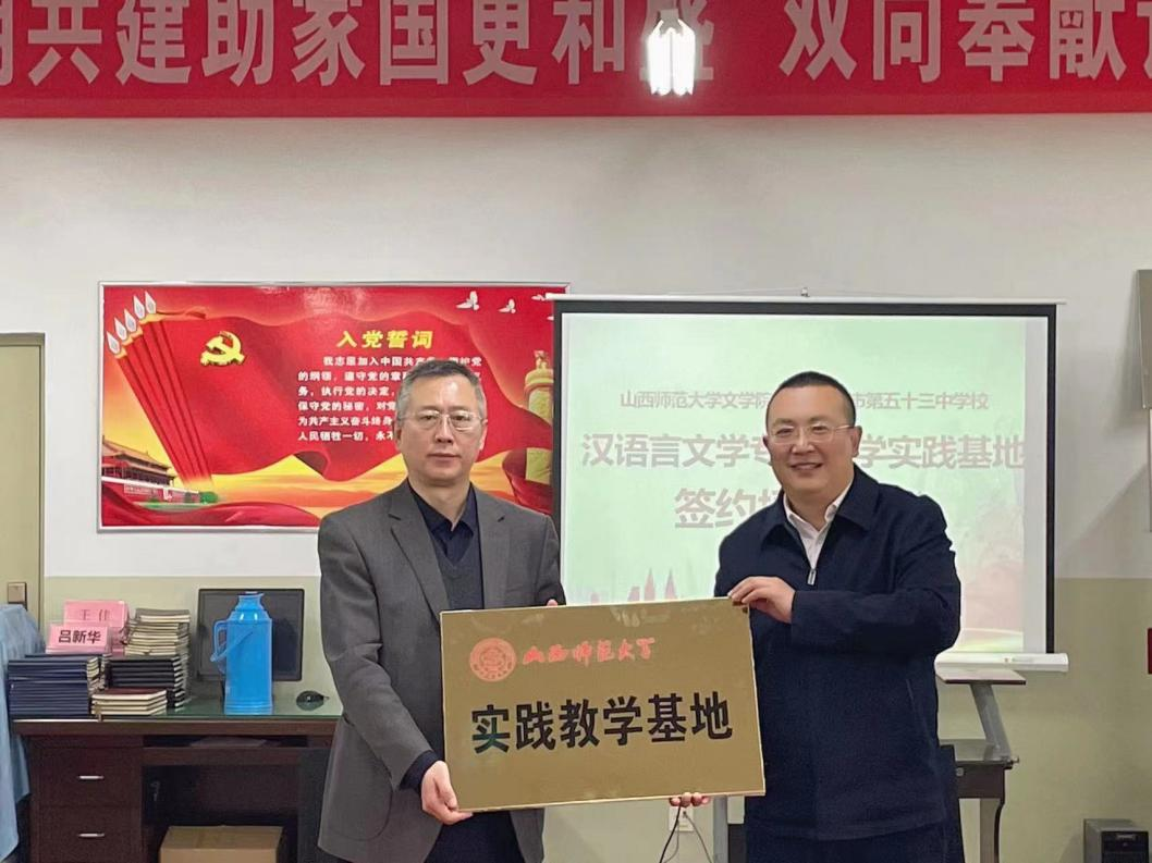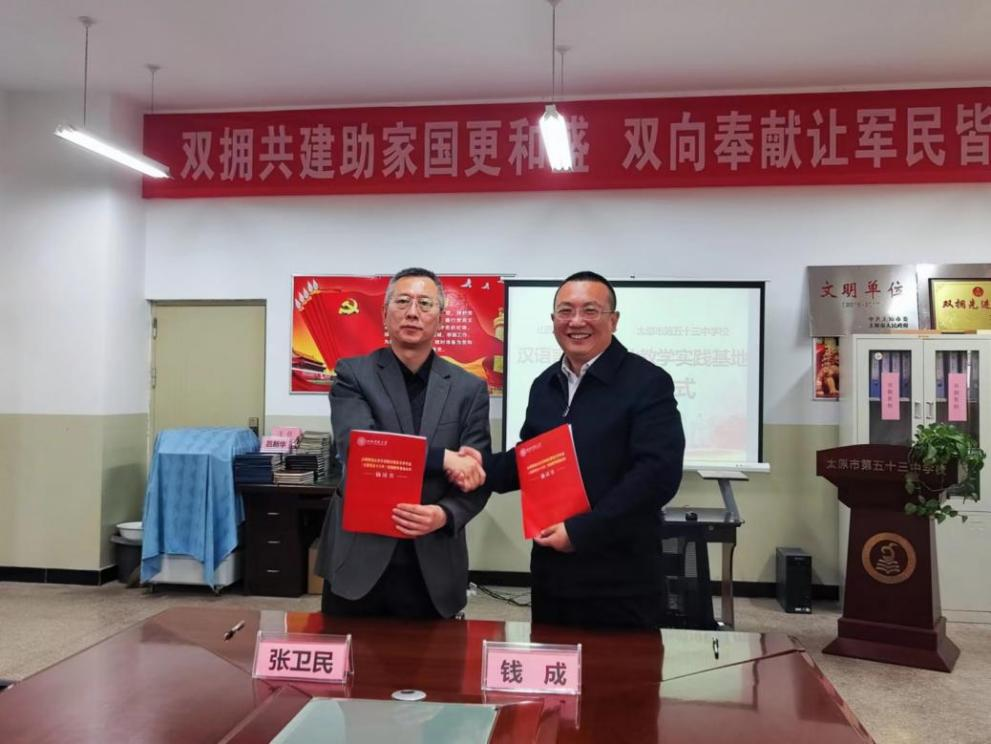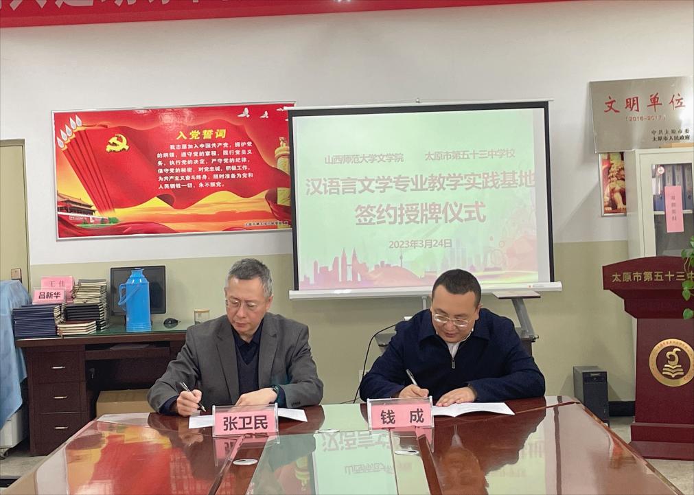 3月24日,304永利集团登录入口与太原市第五十三中公司顺利举行合作共建“汉语言文学专业实践教学基地”签约仪式。文公司党委书记钱成与第五十三中公司董事长张卫民,签订了《实践教学基地合作协议》。