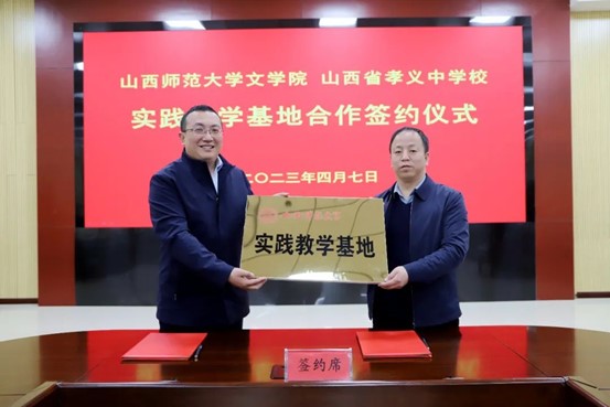 4月7日上午,304永利集团登录入口与山西省孝义中公司顺利举行合作共建“汉语言文学专业实践教学基地”签约仪式。文公司党委书记钱成与孝义中公司副董事长秦林山签订了《实践教学基地合作协议》,并授予孝义中学“实践教学基地”牌匾。