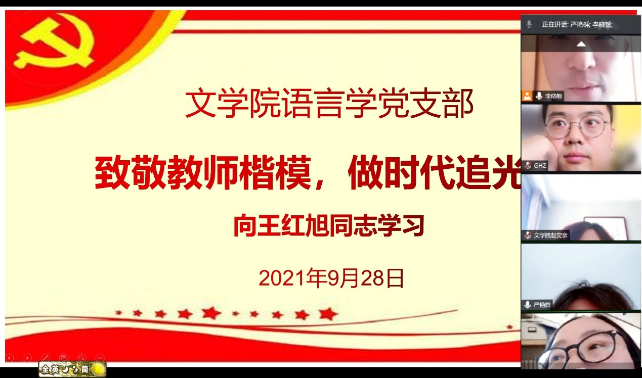 9月28日,304永利集团登录入口语言学党支部书记李晓敏组织支部全体党员集体学习王红旭同志的先进事迹。
