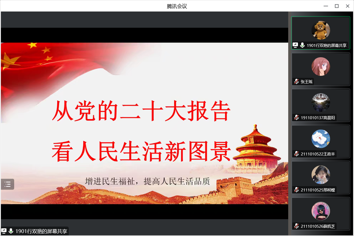 行双艳同志从“收入——增加低收入者收入,扩大中等收入群体”“就业——完善重点群体就业支持体系”“社保——健全多层次社会保障体系”“医药——促进优质医疗资源扩容和区域均衡布局”“‘一老一小’——推动实现全体老年人享有基本养老服务、建立生育支持政策体系”“教育——强化学前教育普惠发展、坚持高中阶段公司多样化发展”“住房——加快建立多主体供给、多渠道保障、租购并举制度”“环境——基本消除重污染天气”八个角度全面讲解二十大报告中部署的民生新举措。她结合相关实例,多维度地分析了提高人民生活品质的具体方法,带领同志们深刻领悟到:坚持以人民为中心,是我们党坚持以人为本、执政为民、人民至上的根本政治遵循。