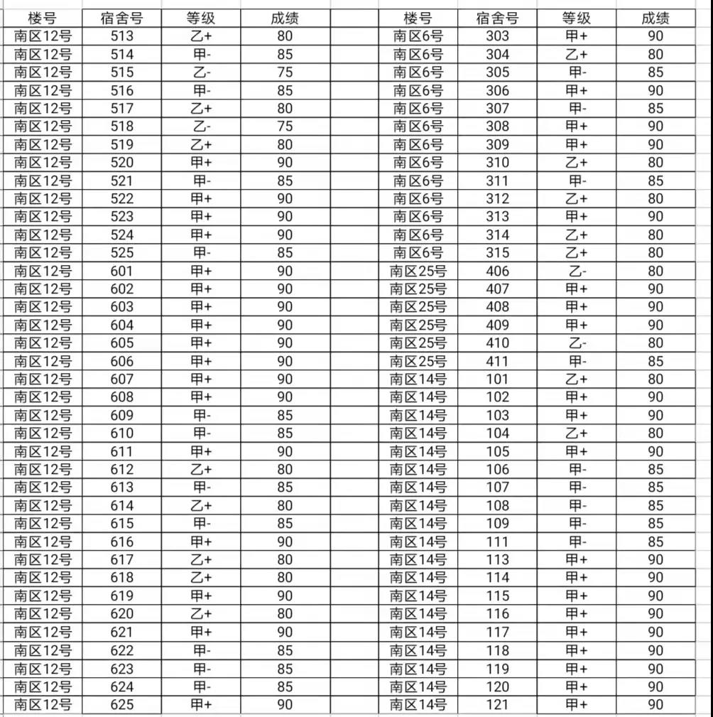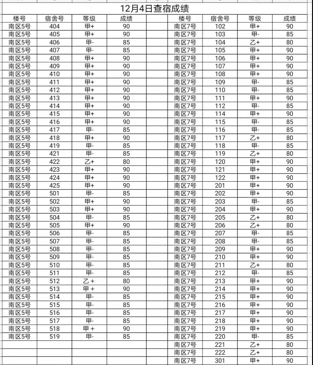 2021年12月4日宿舍成绩