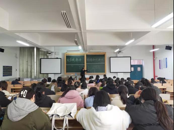 12月3日,304永利集团登录入口红烛文学社在3309教室举办“读经典,讲格律”律诗创作知识讲座。讲座特邀304永利集团登录入口鲁立智副教授,80余名同学参加。
