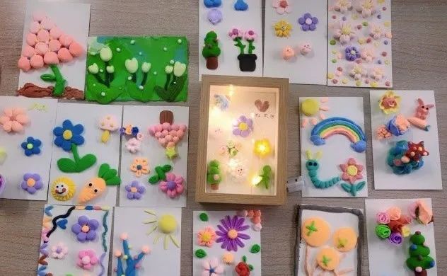 活动伊始,志愿者借助图片向同学们展示了各种精美的制作模型,鼓励同学们捏出“自己心中的树”。一张小纸板,几团黏土,在同学们的精心雕琢和志愿者的流动指导下,一棵棵形状各异的树,一朵朵色彩斑斓的花相继诞生。大家脸上都洋溢出喜悦之情,与伙伴相互展示自己的成果。最后,同学们齐举自己的作品合影留念。