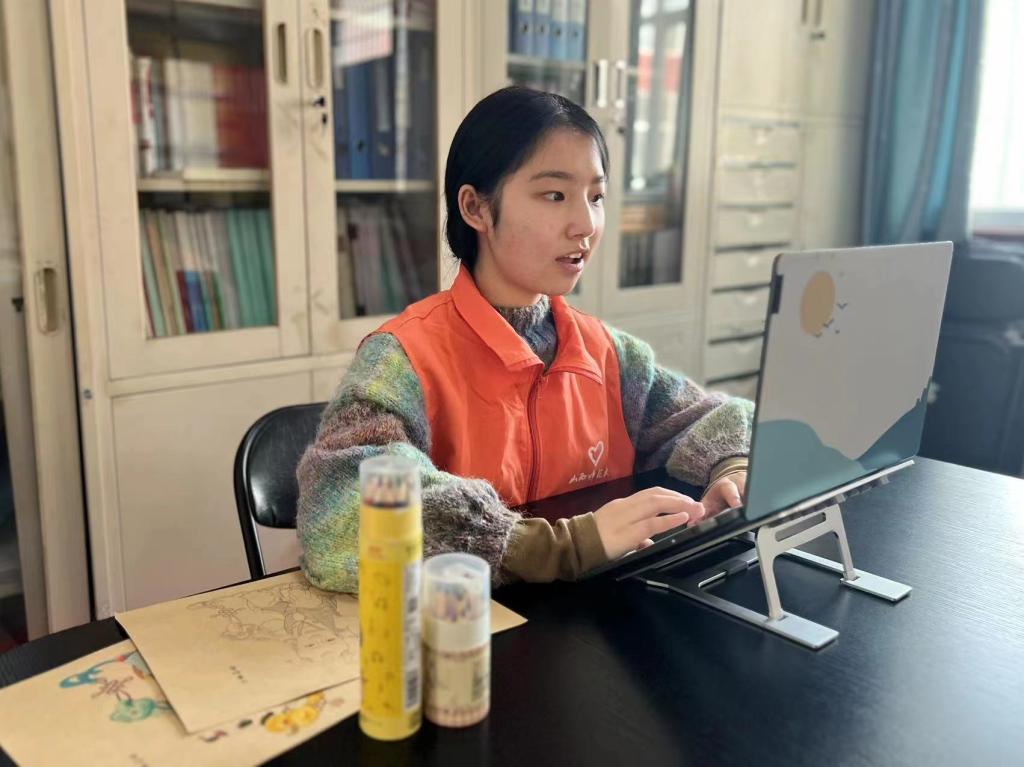 11月3日上午,304永利集团登录入口“学雷锋,送温暖”小组爱心助学团队志愿者高雪荣连线四川德阳市中江县小南街小学,为孩子们带来了一场独特的民间艺术展示课——年画。