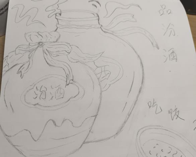 “北风潜入悄无声,未品浓秋已立冬。”天气渐寒,却带不走心中温暖,同学们用文字或图画积极分享家乡的美食,诉说冬日民俗故事。孟春燕同学用生动的笔触描绘出亲人相聚一堂,热热闹闹包饺子的画面,人人带着笑颜,圆滚滚的饺子满载亲人的爱意,直暖心底。焦睿昕同学向大家分享了家乡非遗羊肉汤的民俗故事,大口吃肉,自然也要大口喝酒。刘雅琪同学对家乡的汾酒记忆颇深,她谈到,汾酒有千年的传承历史,也是家乡特产之一,每逢冬至,家家户户也会拿出各自珍藏的汾酒与家人一同品尝。同学们通过分享家乡民俗故事,表现了家乡非遗民俗文化的独特魅力,诠释对家乡风土人情的热爱。
