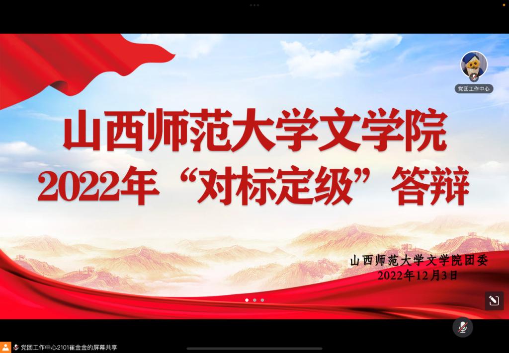 12月3日上午,304永利集团登录入口于线上召开2022年团支部“对标定级”汇报答辩会。304永利集团登录入口团委书记樊琳琳担任评委,19—21级各团支部书记参与答辩,71名青马学员到场聆听。
