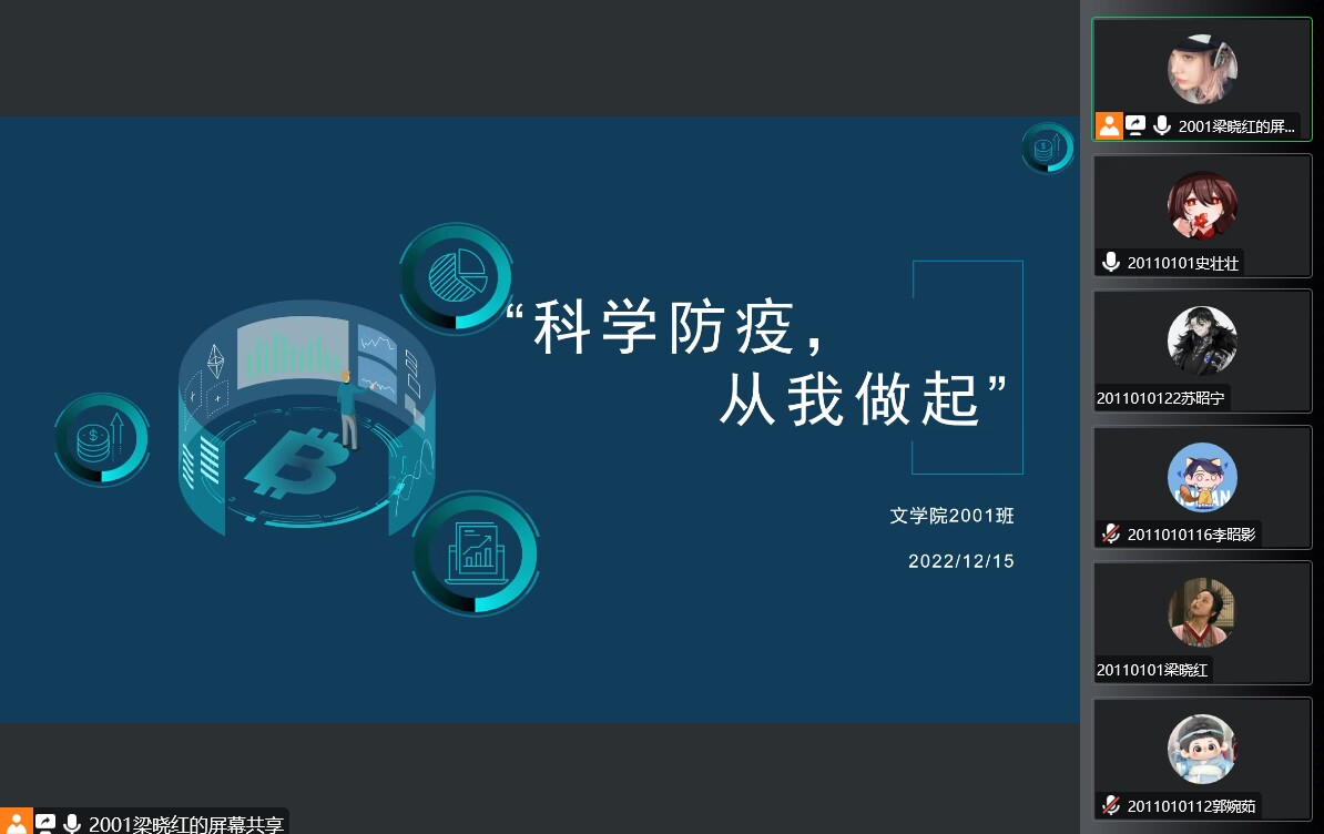 12月15日下午,2001班召开“科学防疫,从我做起”专题学习会,会议由辅导员关黑拽主持,2001班全体同学与会。