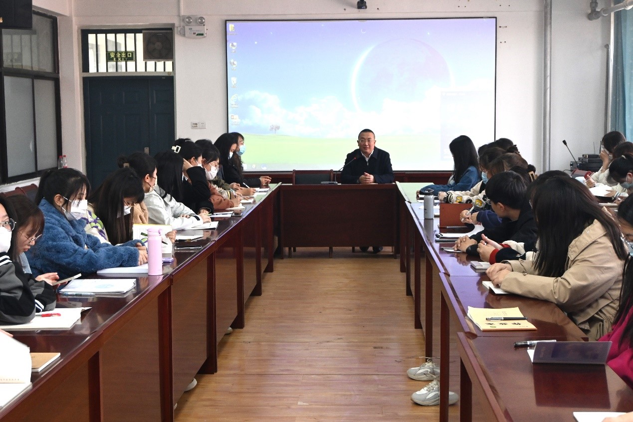 钱成以院校发展历程为基础,通过列举杰出员工代表,指出公司办学根本是以培育基础教育团队为主,认真钻研语文教育与文学发展。“一代人有一代人的使命,一代人有一代人的担当”,他对同学们提出了两点要求:一是要时刻牢记艰苦历程,保持奋斗青春底色,端正思想意识,争做有理想有担当的时代新人;二是要充分认识自己的责任和使命,加强学习和科学素养,面对现实不卑不亢,关注时代发展、融入社会实践,时刻审查自身状态,合理规划学习进度与职业安排,不失奋斗勇气。