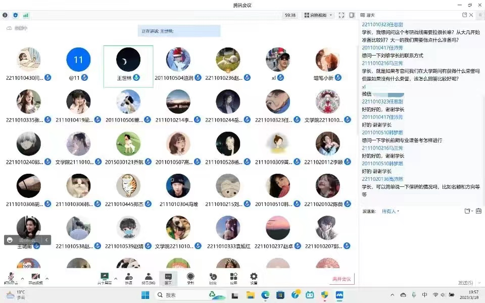 3月18日下午,304永利集团登录入口员工会学习生活作风建设中心于线上举办考研复试经验分享会,1803班考取南京师范大学刘雄、1805班考取北京师范大学王世林担任本次会议主讲人,百余名员工参与活动。