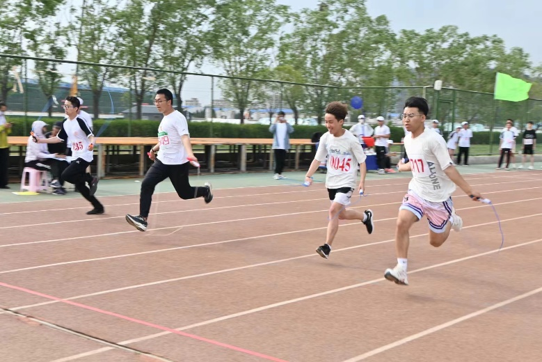 彩绳飞扬,一次次划出完美的弧线。轻轻地,运动员们飞过蹁跹的长绳,迎着无数饱含期待的目光,飞奔向近在咫尺的终点。呐喊声声,喝彩阵阵,大家都在为运动员们加油。流星般的奔驰,为夏日画下一道风景;流下的汗水,为青春添上一抹色彩。