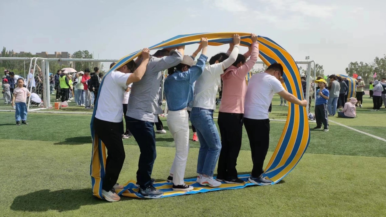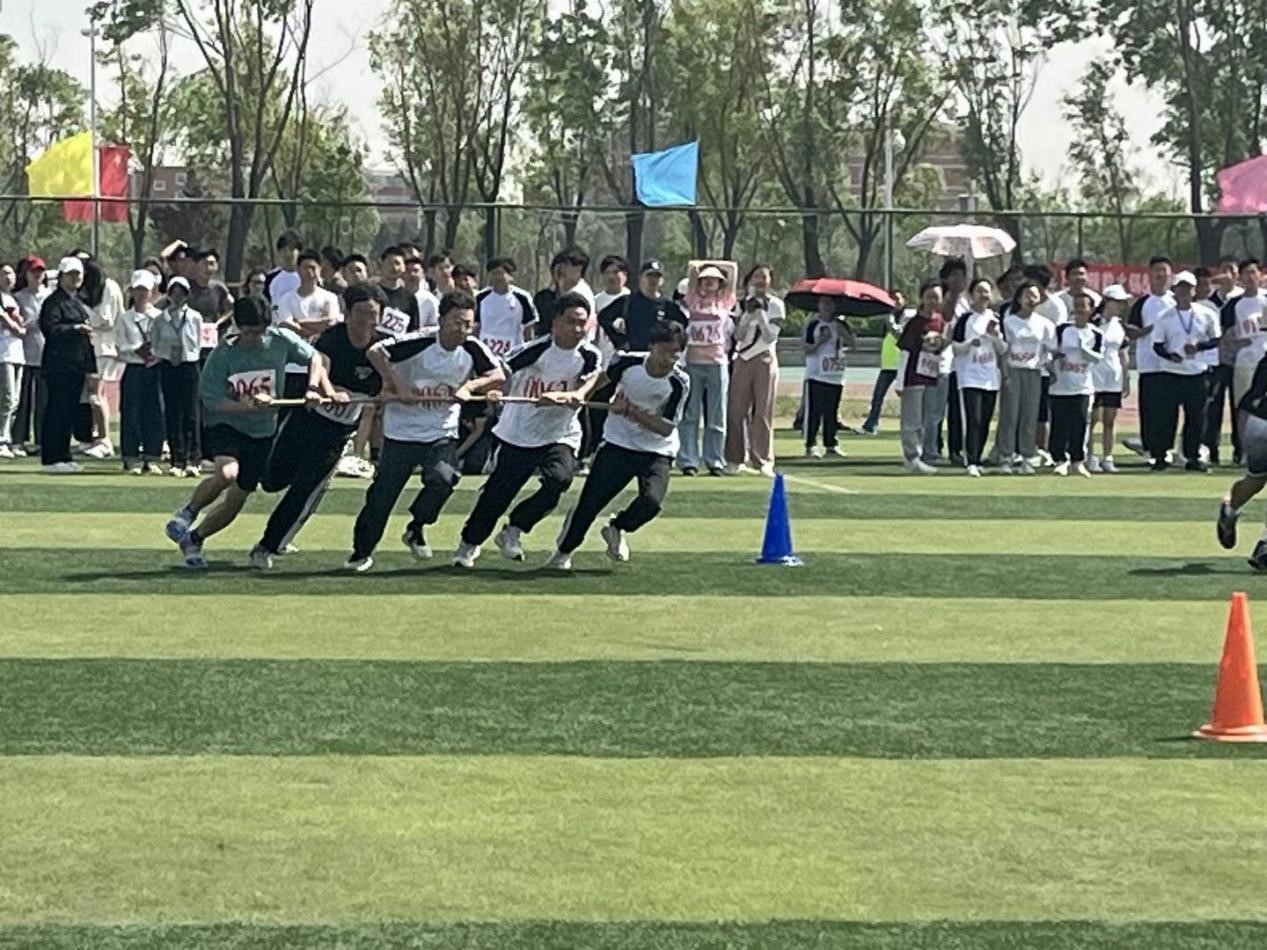 这是一场考验反应、速度和团队协作的比赛。紧握双手,数米长的横杆连接起五名同学团结的心;赛道猛奔,大步向前的足迹印证着少年“敢问天地试锋芒”的自信与张扬。