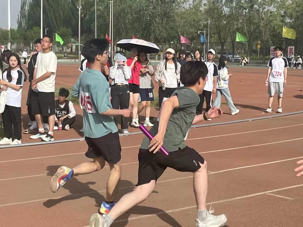 运动员们双手触地,目视前方,一声枪响过后,一场跑道与风速的较量拉开序幕,运动员们如离弦之箭冲出起跑线。每一次接力棒的交接,都凝结着希望;每一次奋力跑的脚印,都在超越极限;前方,是队友远远伸出的手,是队友目光中的急切、鼓励与希冀,是让我们势如破竹、锐不可当的力量!