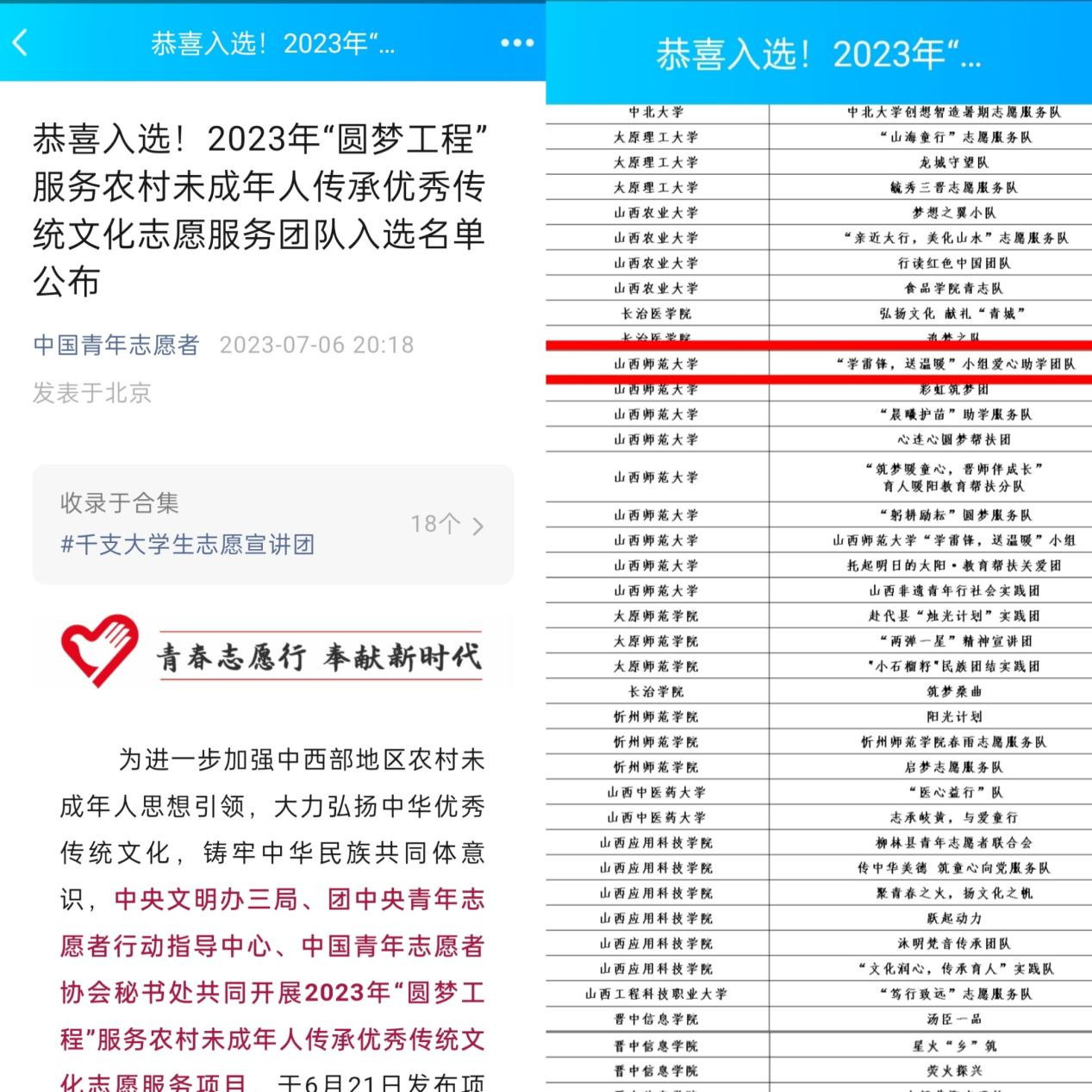 团队入选2023年“圆梦工程”服务农村未成年人传承优秀传