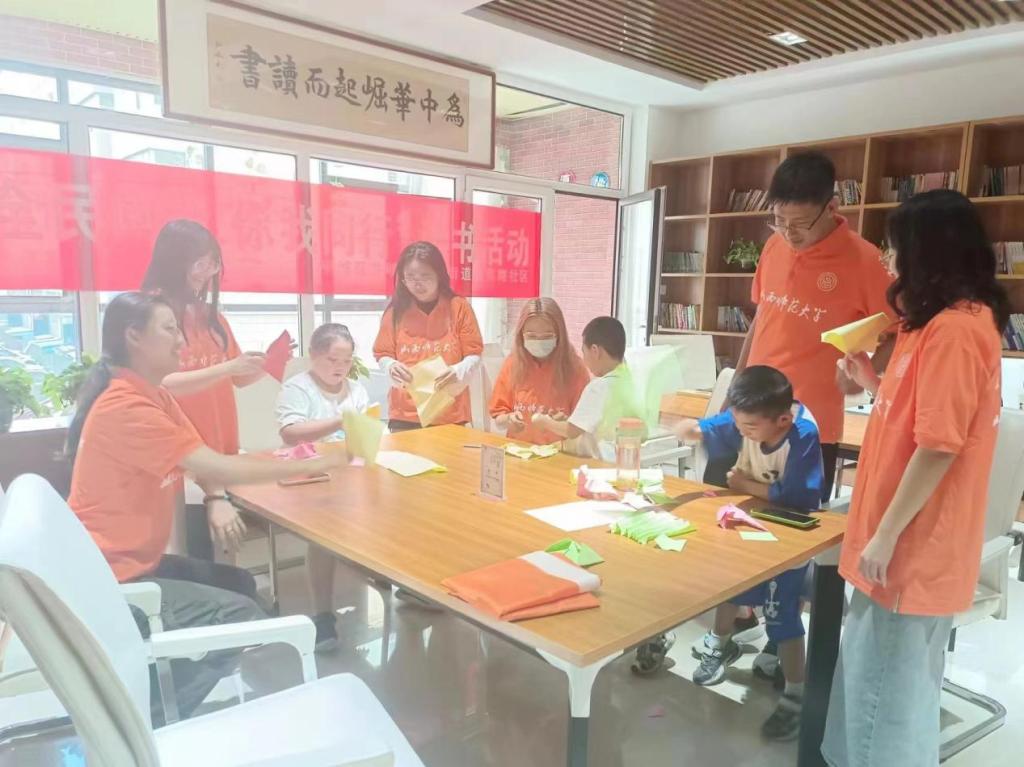 志愿者带领小朋友们进行剪纸