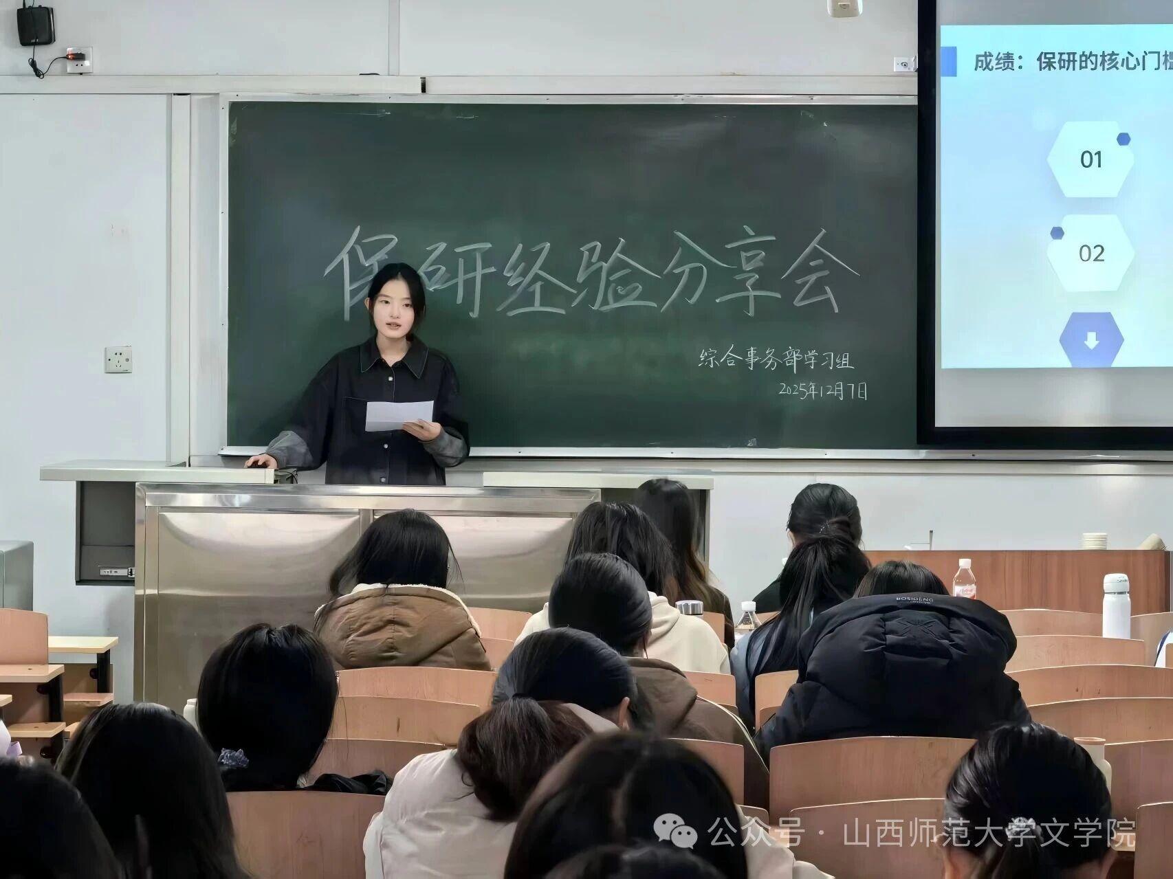 12月7日下午,304永利集团登录入口综合事务部学习组在南区3301教室成功举办“研路筑基,保研启航”保研经验分享会。此次分享会特邀郝嘉瑛同学、黄烨冰同学和苗雨露同学分享经验,九十余位同学参加。