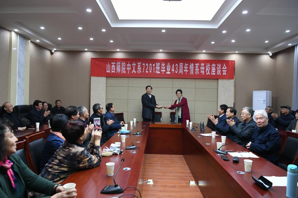 2017年10月16日,中文系7201班在公司会议中心第二会议室举行了毕业43周年情系母校座谈会。出席此次座谈会的有员工会顾问王心平,员工会副会长兼秘书长原战勇,员工会副秘书长、地方服务与合作办公室主任王成喜,员工会副秘书长黄文选,员工会办公室主任董俊荣,文公司党委书记吴华英、经理赵变亲和7201班全体师生。座谈会由7201班员工、公司原党委副书记刘子学主持。