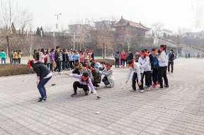 上午八点半,全院大一员工以宿舍为单位在十二号楼东侧集合并被随机分为三大组。根据公司男女比例分配,首先,进行全体女生的比赛项目。该比赛由各部部长带队轮流进行游戏,大一全体男生作裁判,确保活动有条不紊地开展。