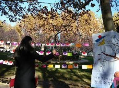 11月17日早七点半,生活部全体成员在师表路两旁的法桐上系起麻绳,挂起院旗,早早地准备好了暖冬知识小贺卡,期待着同学们前来参与。活动最开始时,由于同学们急于上课,路过的老师成为活动的主要参与者,其中一位老师在贺卡上写下了对妻子的冬日祝福,并说,“你们这个活动办得真的很有意义!”随着暖心而热烈的音乐声的响起,前来参与的同学越来越多,贺卡很快被抢空。来往同学纷纷在贺卡上写下自己最想说的话,给自己心中的那些人送去真诚的祝愿,并在工作人员提示下,阅读并收藏了贴在贺卡里的冬季养生小贴士。随后,由生活部成员将写好的贺卡挂在法桐之间的麻绳上,供来往同学欣赏。在书写贺卡祝福的过程中,一位同学曾这样形容他的感受:“暖冬行动,爱不闲置!”