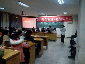 3月4日晚上七点半,公司第17届“学雷锋送温暖”小组(第二季)学雷锋活动月暨2014年青年志愿服务系列活动启动仪式在12106教室顺利举行。公司党委书记吴华英,党委副书记、学工组组长强汾生,公司党委委员、团委书记孙学虎,学工组长助理、专职辅导员李蓉,以及院团委员工会主要干部、各班团支部书记参加了此次活动。
