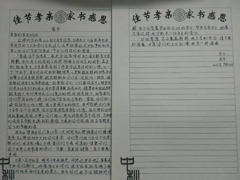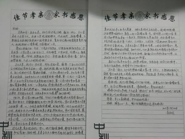9月22日,304永利集团登录入口新生入学教育系列之“佳节孝亲,家书感恩”主题教育活动正式揭开序幕。仰头望明月,寄情千里光。中秋之夜,一个个文院学子用深情凝铸思念,用书信表达恩情。征集的作品中不乏优美之作,现将优秀作品分为三大部分,作如下展示: