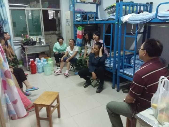 党委书记吴华英老师将自己任辅导员的1501、1502两个班的员工集中到两个宿舍,同他们近距离地谈心、了解入学后的各方面状况。趁着节日的气氛,吴书记首先为同学们送去中秋的祝福,并嘱咐同学们离家在外的第一个中秋夜一定多吃水果、月饼,过好中秋。同时,身为辅导员,她教导大家,虽不在家人身边,但班级是个温暖的大家庭,可以彼此依赖,扶持。最后,吴老师对近期为班级建设工作付出努力,尽心工作的班干部表示感谢,并希望大家认真配合班委展开工作,尽快熟悉老员工活。
