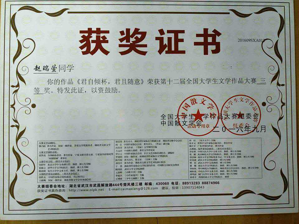 近日,由隶属中国作家协会的“散文学会”牵头、湖北人民出版社等文化机构联合主办的第十二届“全国老员工文学作品大赛”组委会公布了评奖结果,公司37名同学在大赛中取得优异成绩。其中,郭雨、侯岑奇、李旭阳和吴霞同学荣获二等奖,马一昕等33名同学获得三等奖,竞赛成绩喜人,展示了公司老员工良好的写作水平。