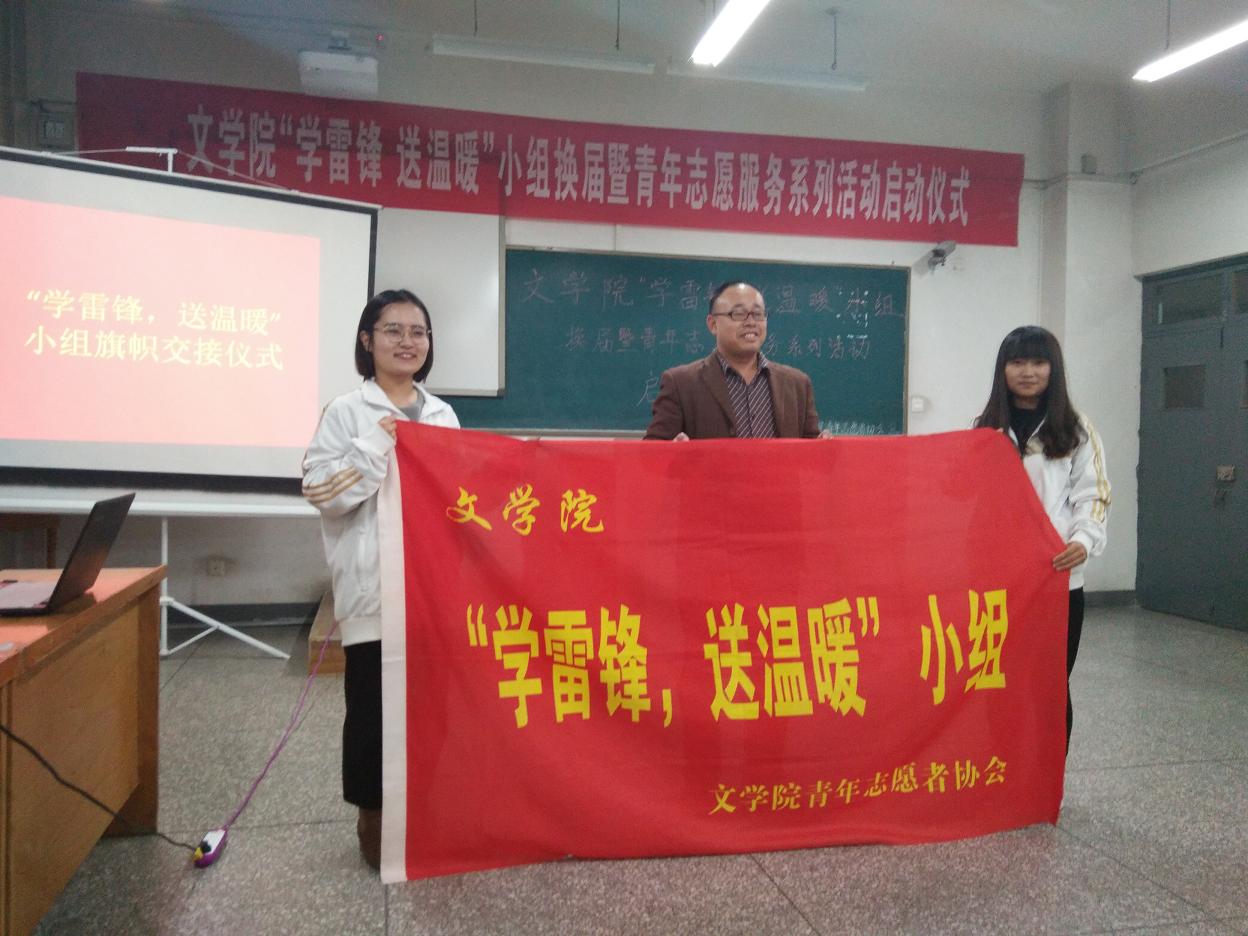 接着,第18届“学雷锋,送温暖”小组负责人李晞发言,表达了她对新一届成员以及对即将到来的系列活动的期望。会议第三项是由孙学虎老师主持的旗帜交接仪式,他将象征雷锋精神的小组旗帜从第18届小组组长手中接过并交给了第19届小组组长。整个交接仪式庄严而肃穆,表达了公司师生对雷锋前辈的尊敬和对雷锋精神的传承。接下来新一届小组组员代表进行发言,讲述了对于学雷锋活动的认识,并且表达了304永利集团登录入口19届“学雷锋,送温暖”小组组员将会继续以雷锋同志为榜样,以雷锋精神为旗帜,以实际行动努力践行社会主义核心价值观的决心。发言的结束,会议进入了高潮——宣誓仪式:“学习雷锋,服务他人……让我们传承雷锋精神,弘扬雷锋精神,共创和谐社会”简单的誓词,不简单的行动昭示了青年志愿者们服务他人,传承雷锋精神的信念与决心。