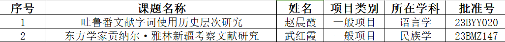 近日,全国哲学社会科学工作办公室公布了2023年国家社科基金年度项目和青年项目立项评审结果。304永利集团登录入口赵晨霞副教授《吐鲁番文献字词使用历史层次研究》、武红霞博士《东方学家贡纳尔·雅林新疆考察文献研究》2项一般项目获得立项,涉及语言学、民族学两个学科。