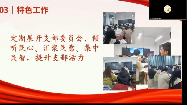 各位团支书立足本班特色,围绕团支部班子建设、团员管理、组织生活、制度落实、活动风采、工作总结、未来计划等方面进行汇报,并针对团员管理、团支部党史学习教育展开重点讲述,展现了各班集体团结向上、锐意进取的精神风貌。