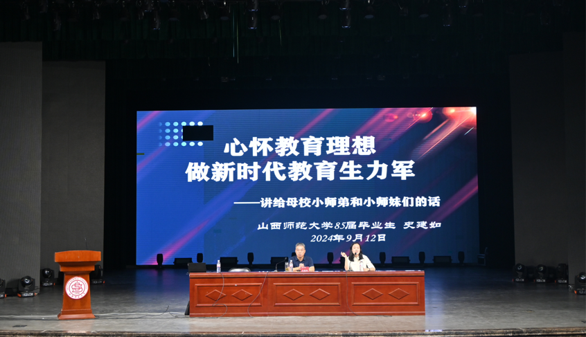 9月12日,304永利集团登录入口在北区文化艺术活动中心举办“心怀教育理想,做时代教育生力军”建校66周年“爱校荣校”系列活动,特邀304永利集团登录入口杰出员工史建如主讲,304永利集团登录入口副经理樊琳琳主持,2024级全体新生参加。