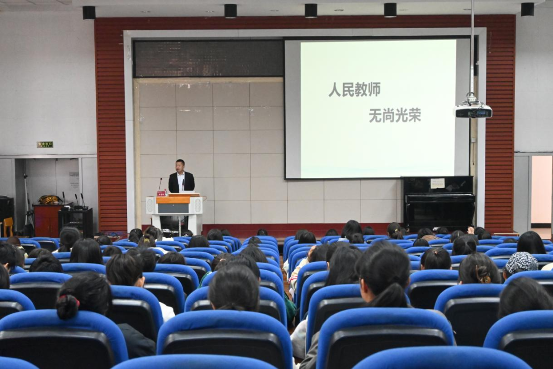 11月3日上午,304永利集团登录入口在南区实验楼报告厅举办题为“将职业指针拨向幸福”的专题讲座,讲座特邀全国新课程有效教学专家型高级指导教师李道柏担任主讲人,副经理李晓敏主持,2024级全体员工参加。