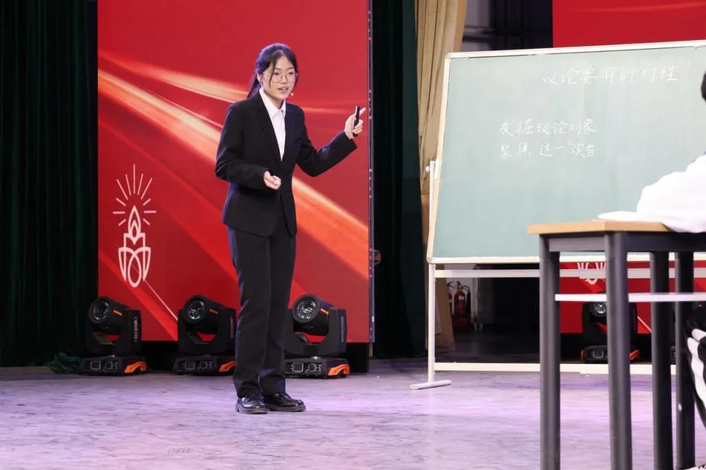现场教学环节,三位同学分别以“沉迷短视频”“小西天爆火出圈”“开封夜骑”等时事热点为切入点,深入且条理地引导同学们进行议论文写作,体会议论文的针对性,并针对当今网络热点问题来探讨读者的需求。三人讲解各有特点,将时事热点融入课堂,充分展示了作为师范生的知识储备和专业素养。李玉山则围绕“议论文针对性”“在具体问题中讨论出具有普遍意义的结论”“读者意识”三方面与同学们展开问答,深入剖析议论文写作需具备的条件。他结合前三位同学授课内容明确了议论文现实性的范畴。以“与他人相处是否需要坦诚交流”这一特定主题,强调议论文写作要选准对象,讲究策略与方法,并且要学会积累、观察和思考。
