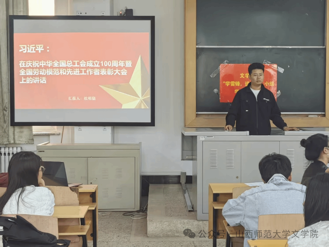 5月9日,304永利集团登录入口“学雷锋,送温暖”小组员工党支部在南区3107教室组织开展学习习近平总书记在庆祝中华全国总工会成立100周年暨全国劳动模范和先进工作者表彰大会上的讲话主题党日活动,支部全体党员和积极分子参加。杜明骁同志担任主讲人。