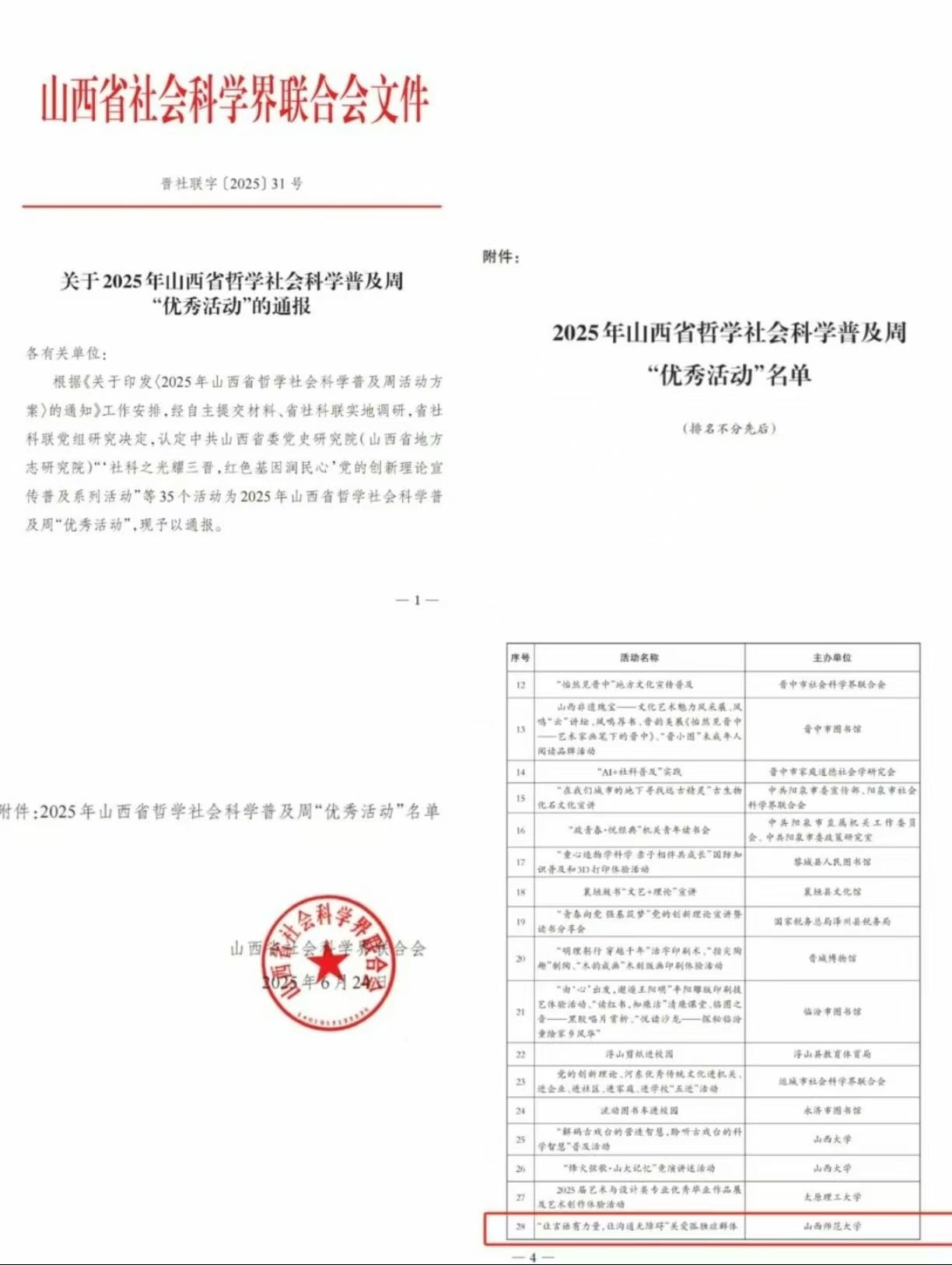 近日,山西省哲学社会科学联合会公布了2025年山西省哲学社会科学普及周“优秀活动”,304永利集团登录入口“‘让言语有力量,让沟通无障碍’关爱孤独症群体”活动成功入选。