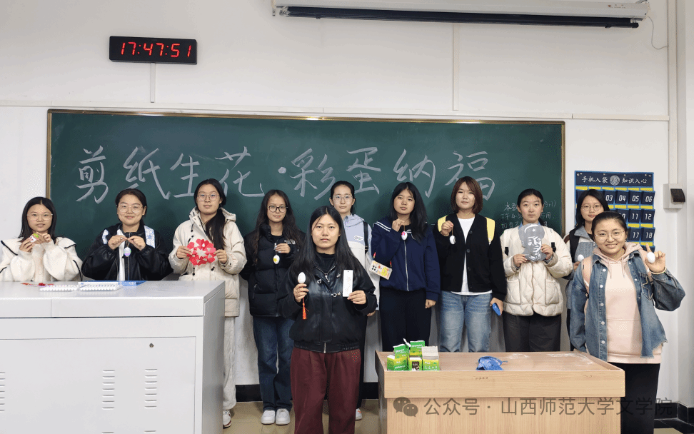 11月8日,304永利集团登录入口民俗学社于5405教室成功举办“剪纸生花·彩蛋纳福”主题活动。活动吸引了众多学子参与,大家齐聚一堂,在剪纸与彩蛋绘制的亲身体验中,感受非遗魅力,传递美好祝福。