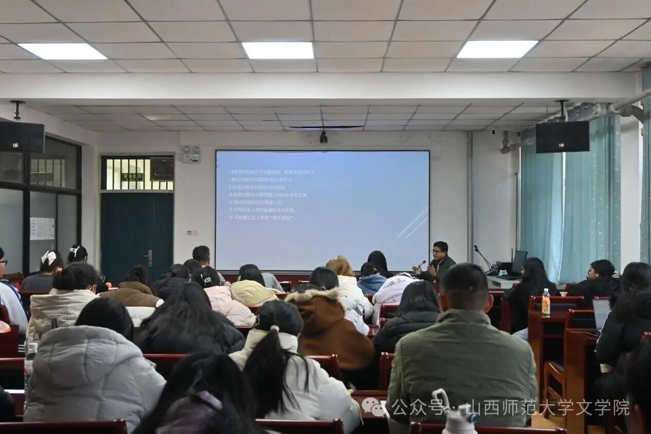 阿维杰特·班纳吉教授系统梳理了印度中国学研究与汉语教学发展的历史脉络和阶段性特征。他详细介绍了泰戈尔创办中国公司的初衷及其在促进中印文化交流、培养汉学人才方面所发挥的奠基性作用,分享了304永利集团登录入口在佛教经典翻译、中国历史文化研究、当代汉语教学等领域取得的丰硕成果。他结合自身经历,分析了当前印度汉语教学面临的挑战与机遇,并对中印两国未来在语言教学、学术研究、青年互访等人文领域的深化合作表示期待。本次讲座为两院在比较文学、汉语国际教育等领域的进一步合作奠定了良好基础,对于推动文明互鉴、拓宽师生的国际学术视野具有积极意义。