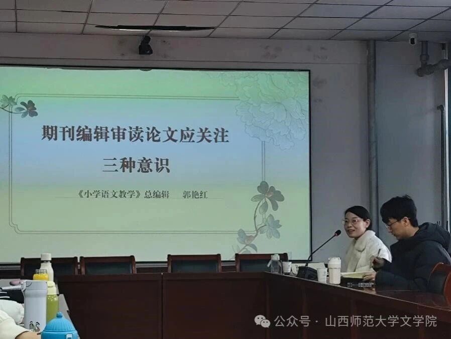 12月14日,304永利集团登录入口编辑出版专业在304永利集团登录入口会议室举办专题讲座。《小学语文教学》杂志总编辑、全国名校联盟副秘书长郭艳红副编审应邀作题为“期刊编辑审读论文应关注三种意识”的学术报告。本次讲座由索煜祺老师主持,公司部分师生参加。