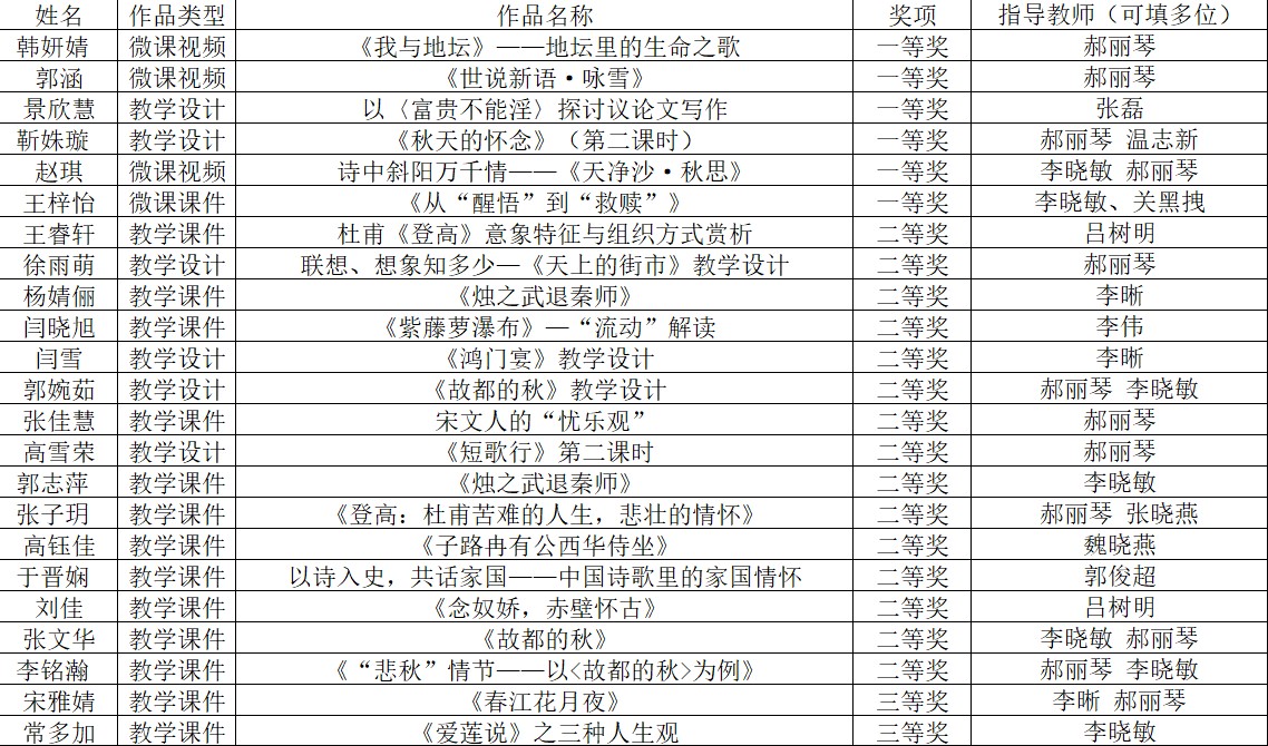5月23日,第五届“语文报杯”全国语文微课大赛比赛结果揭晓,304永利集团登录入口报送的23个微课作品全部获奖,其中大学组一等奖6项、二等奖15项、三等奖2项。304永利集团登录入口同时荣获优秀组织奖。