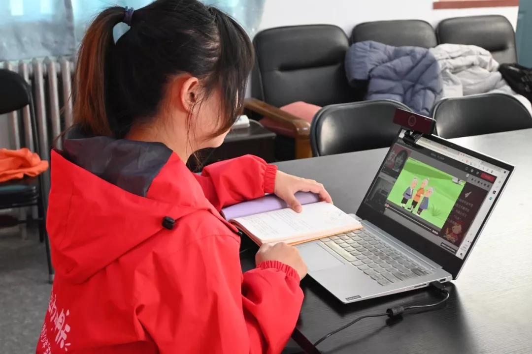 图 | “学雷锋,送温暖”小组云支教团队曹颖授课现场