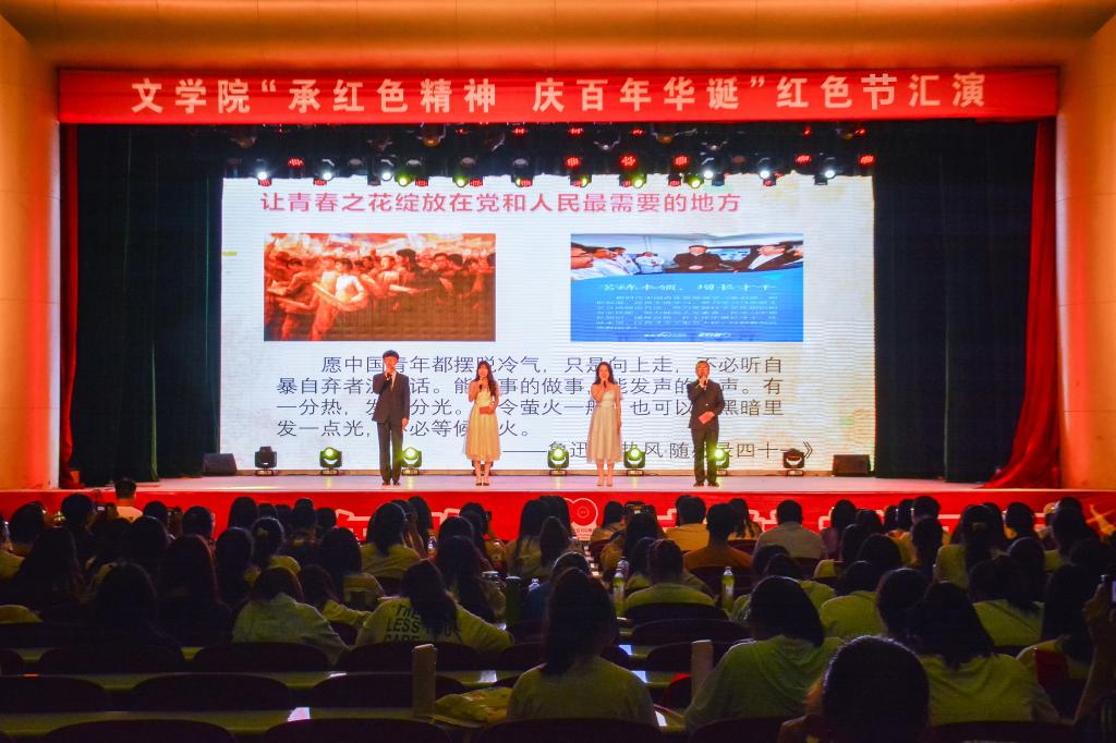 为坚定理想信念,深化“四史”主题教育,传承红色革命精神,庆百年华诞,5月23日晚,文公司党史学习教育之“承红色精神,展青春风采系四史教育,庆百年华诞”红色节演出在公司文化艺术活动中心圆满完成。公司党委书记强汾生,公司党委副书记钱成及20级各班辅导员应邀担任评委,公司500余名同学共同观看了演出。
